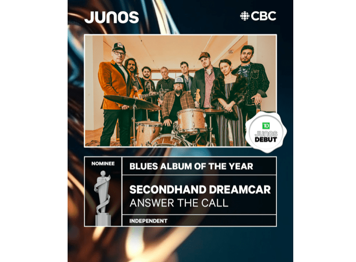Canadian soul/roots/funk powerhouse collective, Secondhand Dreamcar, has earned their first-ever JUNO nomination in the Blues Album of the Year category for their debut album Answer the Call. The nine-piece ensemble stands out as the only fully independent nominee and the only first-time nominee in the category this year. In addition, the group was recently nominated for three Canadian Blues Music Awards.