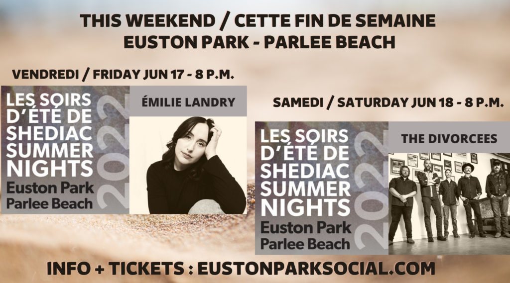 Ce // This weekend @ Euston Park – Parlee Beach, Shediac Ouverture des portes 19 h // Doors open at 7pm Programme complet // Full program:www.eustonparksocial.com/music 00Post navigationPrevious Previous post: Just finished this 12×16” acrylic floral abstractNext Next post: Award-Winning Atlantic Canadian Musician Terry Penney to Release Brand New Folk/Rock Single About Distant Love – Travelling On Those Tracks – June 17 2022