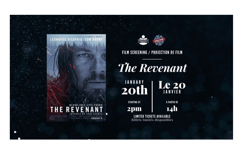 Rejoignez-nous pour une passionnante projection en personne du film The Revenant (2015) le samedi 20 janvier 2024 à 14h00. Plongez-vous dans l’histoire captivante de survie et de vengeance qui se déroule dans une nature sauvage impitoyable. Leonardo DiCaprio livre une performance remarquable qui lui a valu l’Oscar du meilleur acteur.