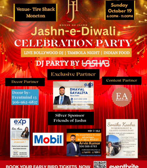 ✨ Don’t wait – book now on Eventbrite and be part of Moncton’s most vibrant Diwali celebration!