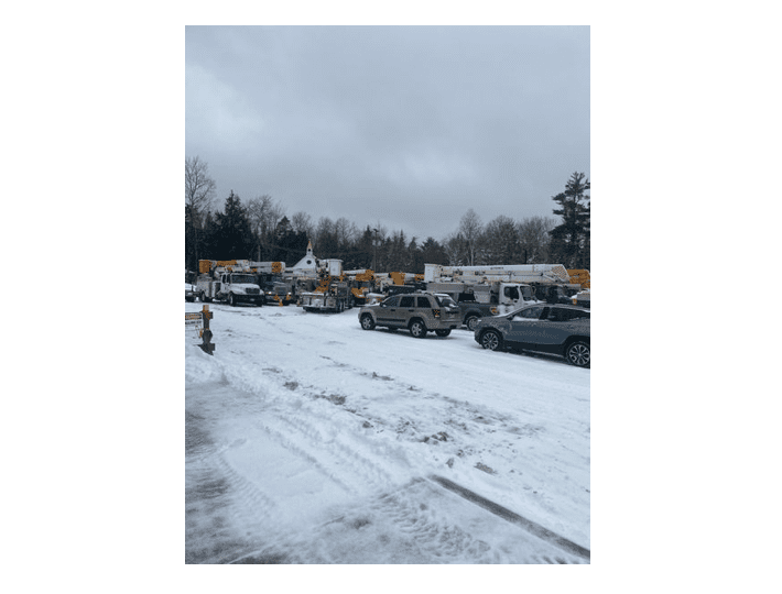 Linemen from Atlantic Canada and Ontario gather at Hanwell Place in preparation of any power outages