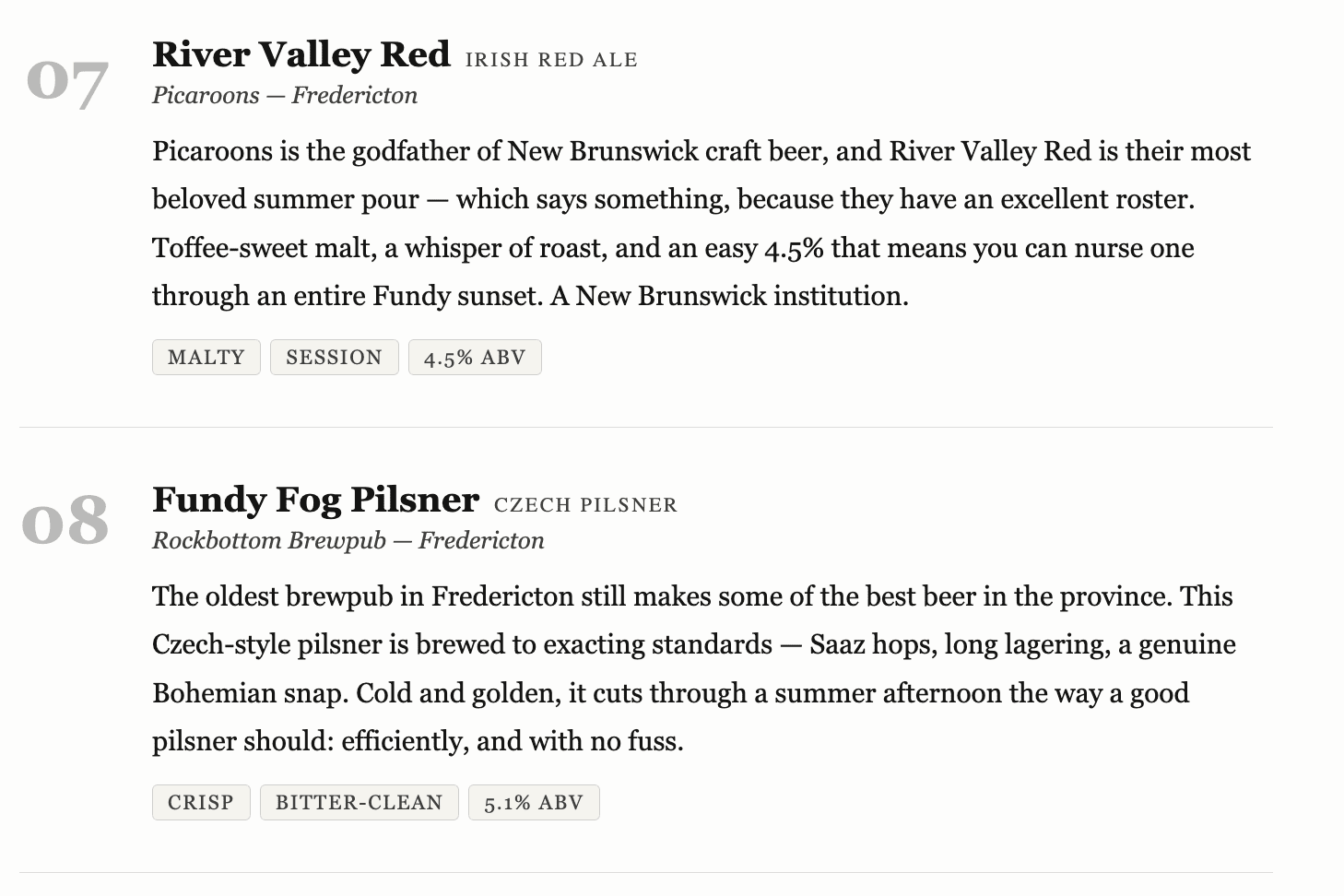 New Brunswick’s craft beer industry is still young by global standards, but the quality curve is steep and the passion unmistakable. Whether you’re working your way through the Fredericton taproom circuit, exploring the Acadian Peninsula, or pulling into a roadside brewery on a road trip down the Fundy coast — there’s never been a better summer to drink local. Santé.