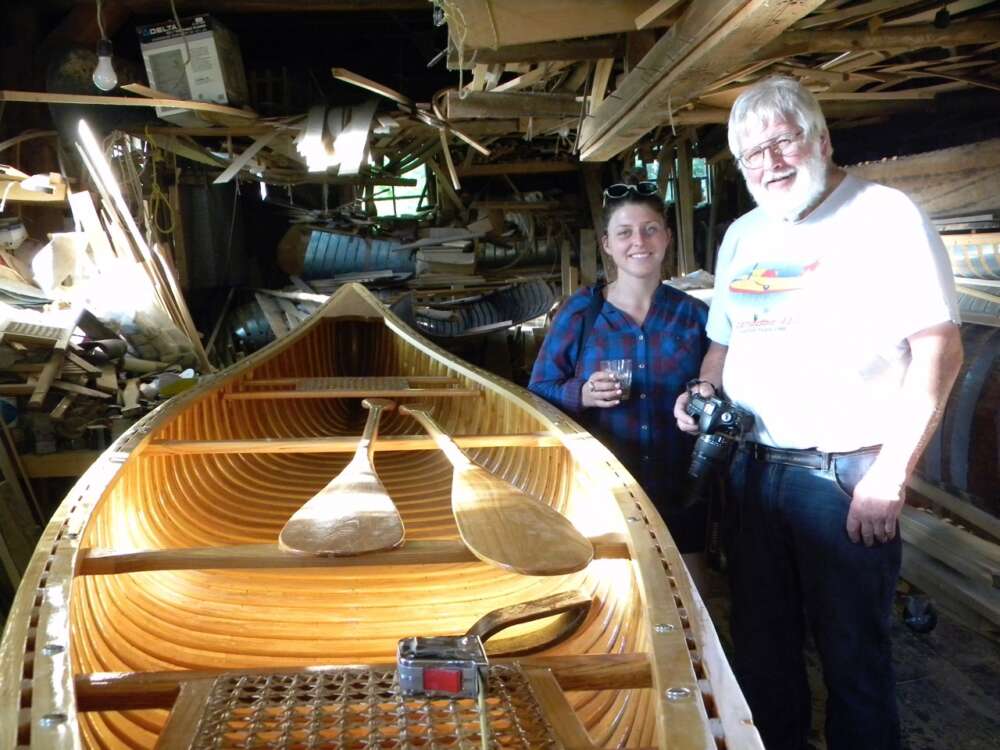 As I drive, I absorb the subtle beauty of this seductive landscape. Pulling my car into Bill Miller’s yard in Nictau, I notice a large rack of moose antlers on a shed near his house. Opening the car door, I see half a dozen canoes lined up outside a small building. This must be the home of Miller Canoes. Stepping out his front door to greet me, his hand outstretched is the canoe builder himself.